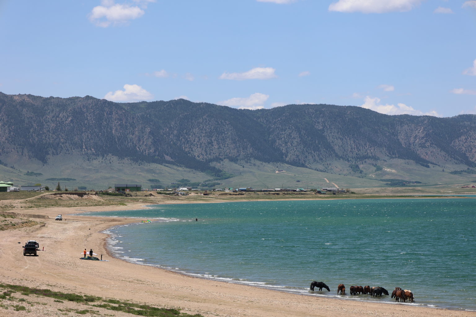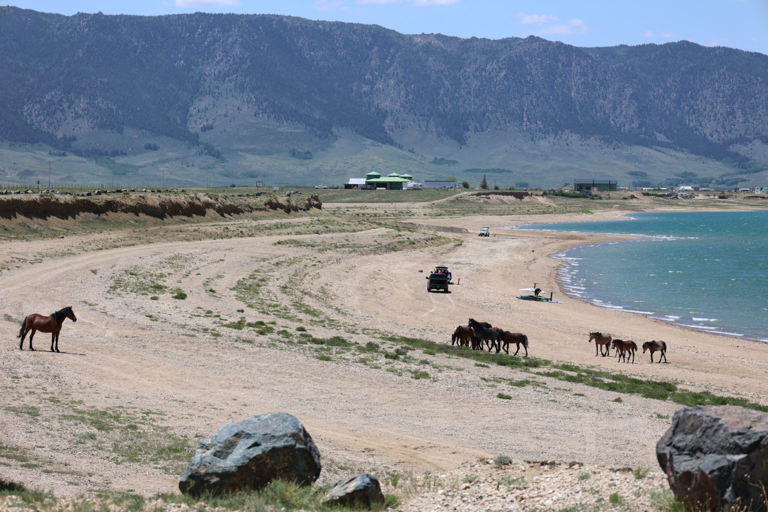Oui comme nous vous ne rêvez pas, des chevaux libres viennent s’abreuver dans le lac !!!! Quel spectacle magnifique !!!! Allez la petite vidéo en prime ;0) regardez ce petit poulain tellement heureux et mignon !!!