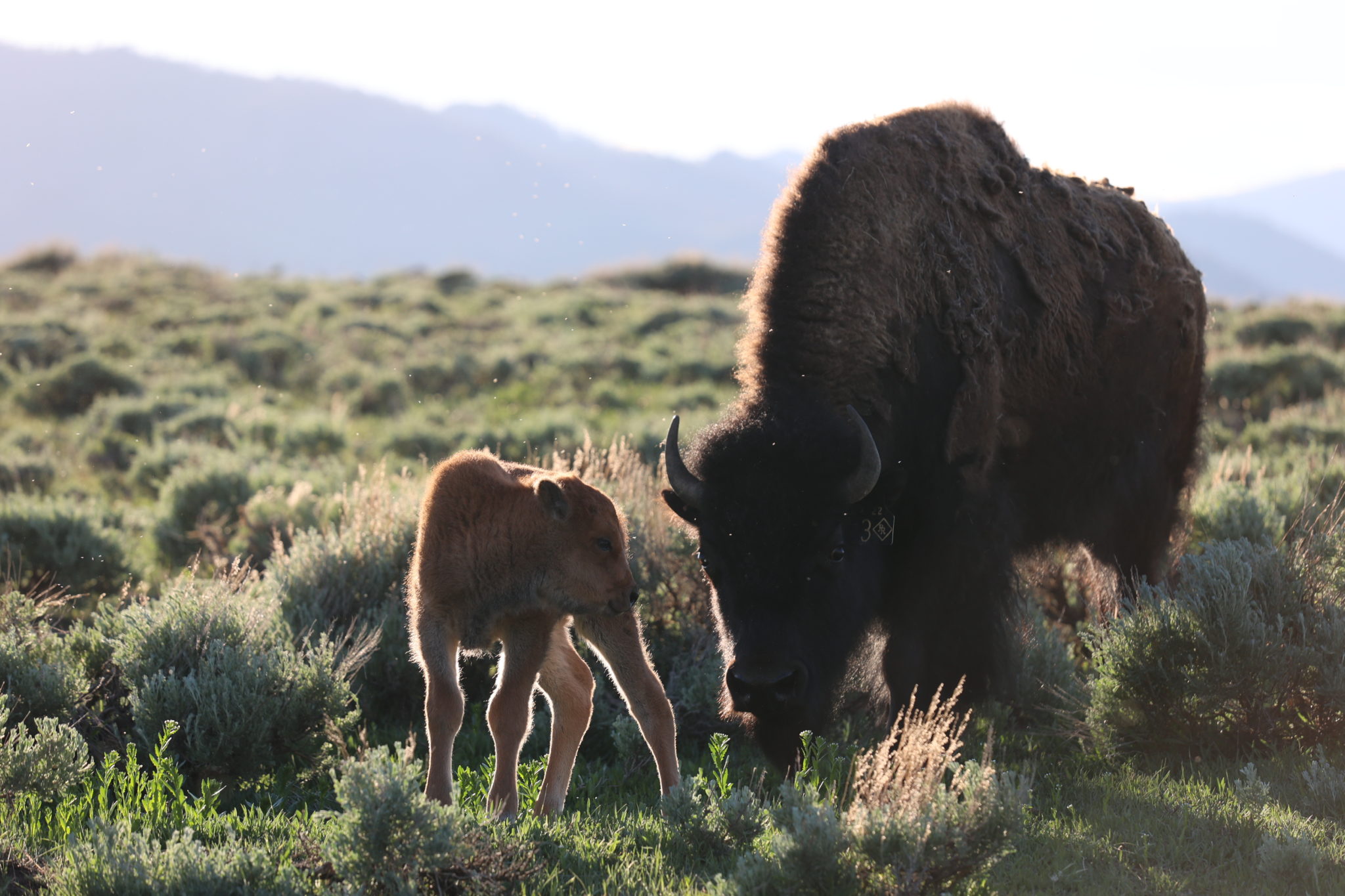 On se retrouve avec des chevaux des poules des lapins de coqs des chiens et des……bisons mais surtout un petit qui vient de naître 4 jours avant !!!!!