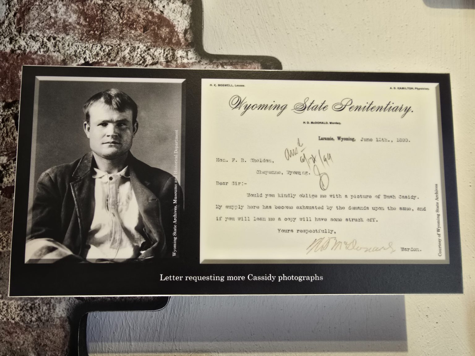 On apprend alors que le fameux Butch Cassidy (qu’on retrouve encore une fois ici cette fois ci et qu’on retrouvera encore en Bolivie lors de notre prochain voyage !!!) a séjourné ici 2 ans de 1896 à 1898 pour vol de chevaux. Saviez vous son nom original ? C’est Robert Le Roy Parker, on l’apprend là. C’est parce qu’il a travaillé dans une boucherie qu’il a été surnommé Butch et Cassidy vient de son ami et mentor du même nom….