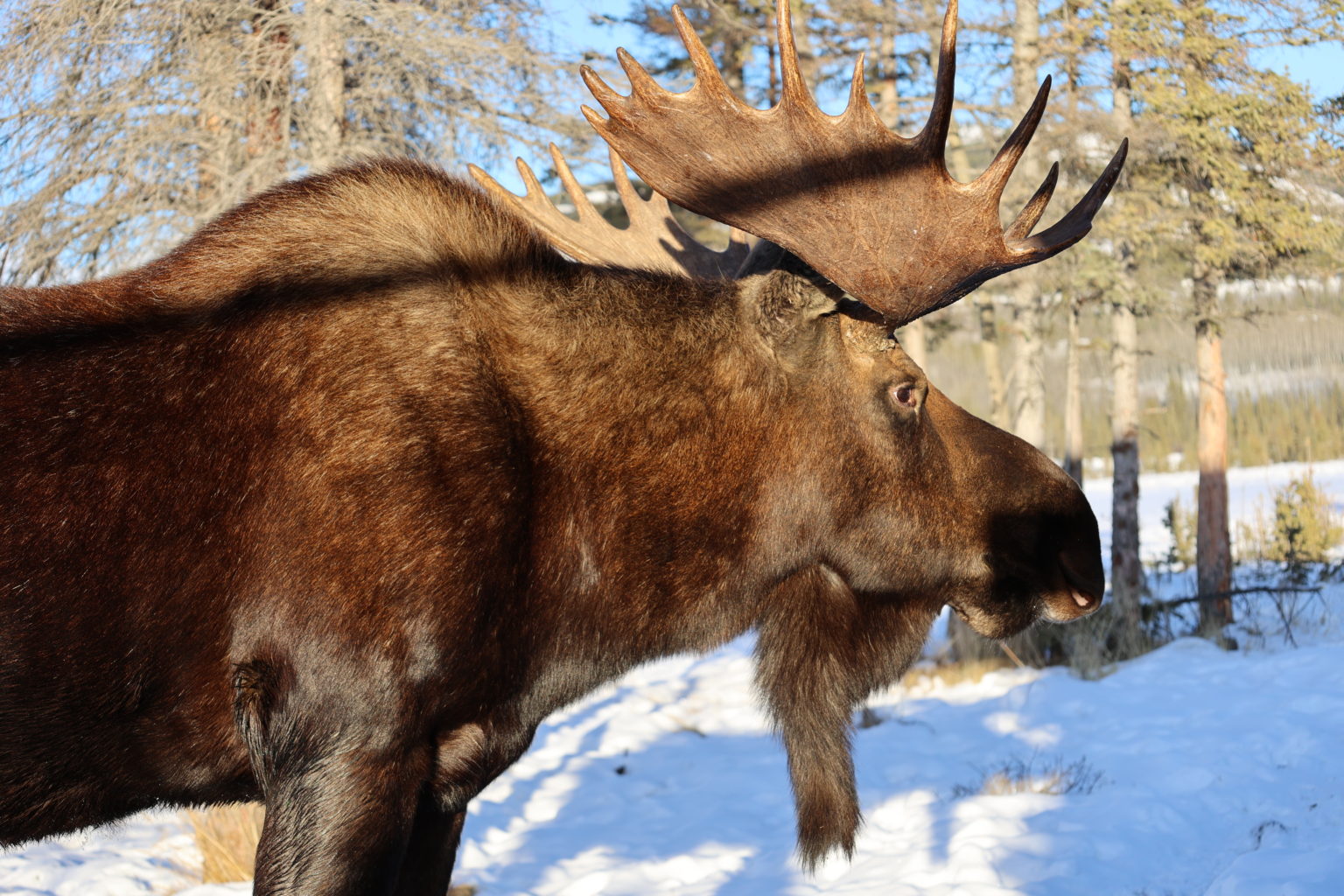 A quelques kilomètres de cette rivière Takhini se trouvent une réserve d’animaux sauvages récupérés pour la plus part d’accidents ou de dommages collatéraux. La réserve est immense et il est très agréable de s’y promener et y découvrir de prêt et tranquillement certains animaux qu’il serait difficile de voir dans leur habitat naturel. Vous reconnaitrez ci dessous le fameux Moose, ou l’élan du Canada. Sur la 2eme photo on y voit bien le fanon, ce petit bout de peau qui pend à son cou. Il est compliqué de savoir si cela sert à quelque chose bien que pour de nombreuses espèces, ce petit bout de peau sert de communication, de thermo régulation ou de sélection sexuelle. Mais chez l’élan le mystère reste…..
