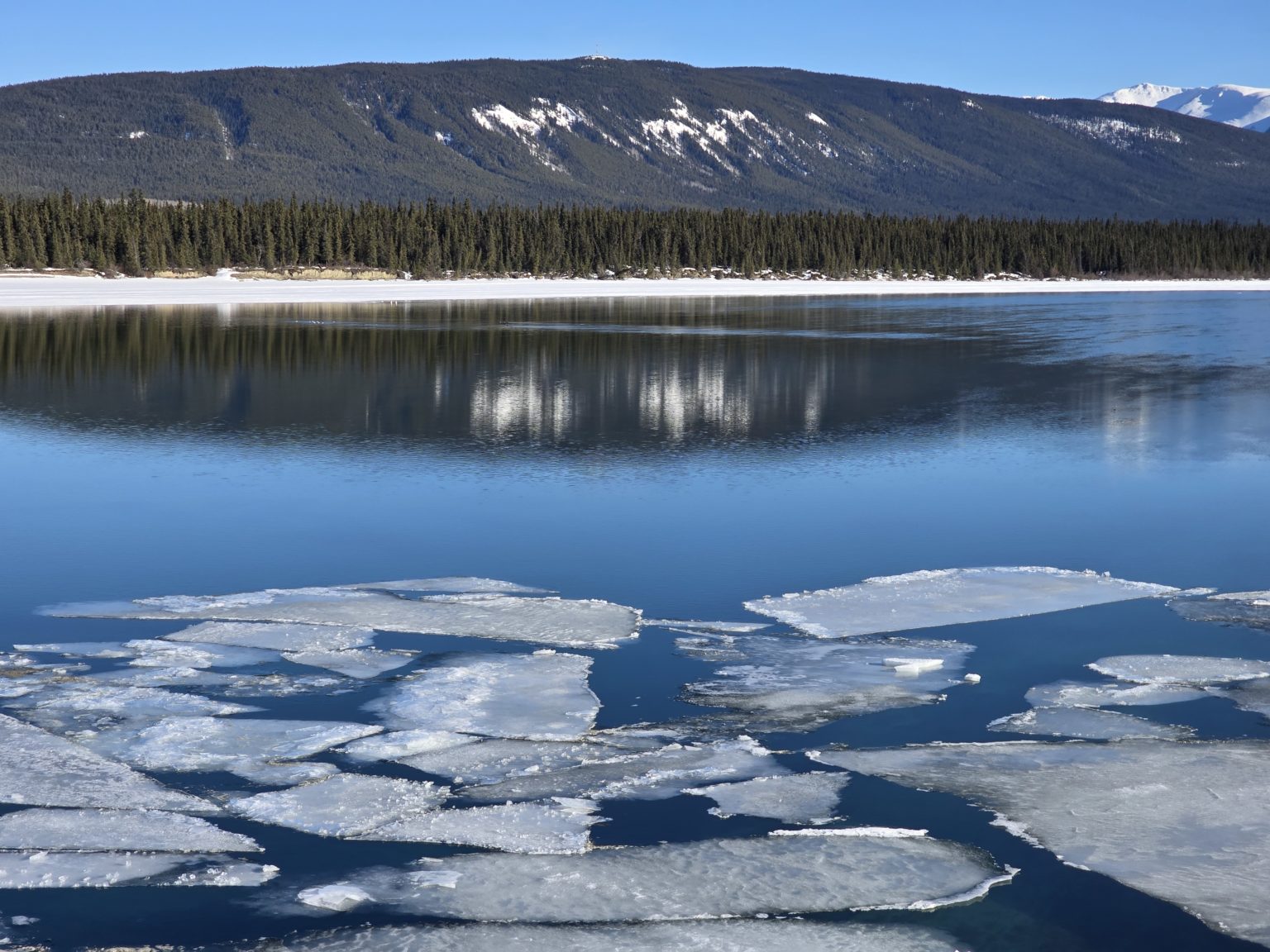 Parfois même c’est digne d’un certain art la manière dont s’enchevêtrent les morceaux de glace en fonction de la force du courant. Autour de Whitehorse, le courant reste régulier ce qui fait que c’est relativement plat mais à d’autres endroit ou d’autres rivières, ou peut des fois observer le chao que provoque le courant sur la glace, c’est fascinant.